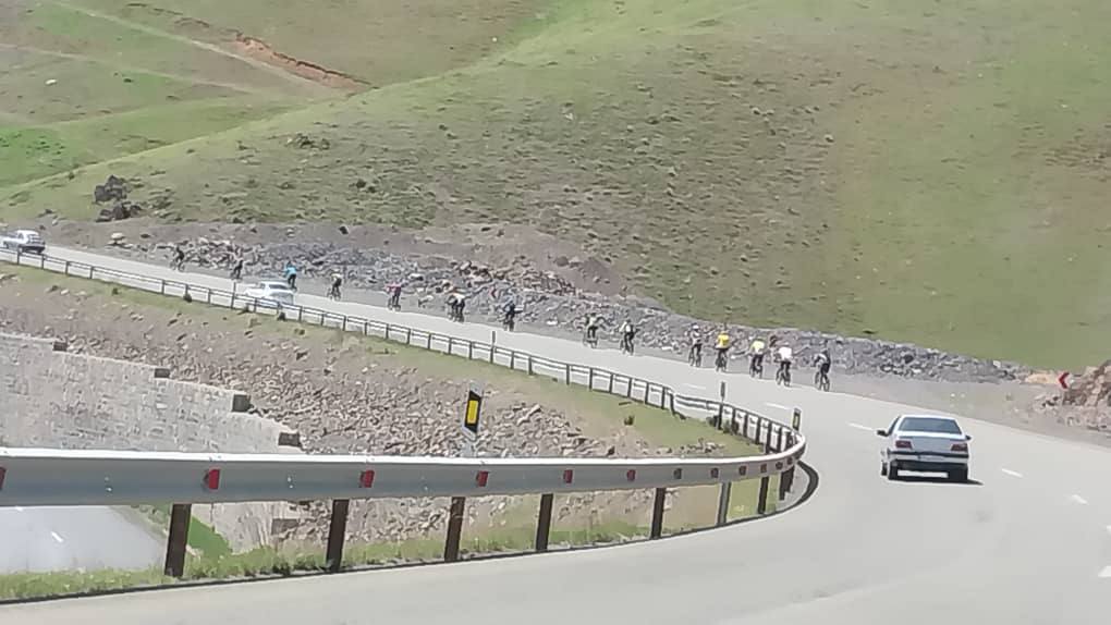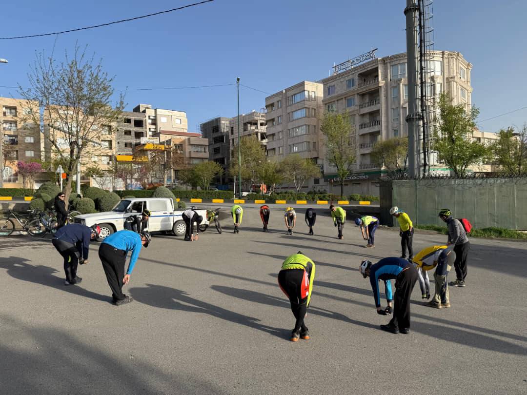 آفتاب دلنواز وزش باد خنک صبحگاهی را دلچسب نموده ودر این هوای مطبوع مابه مسیر خود ادامه دادیم ،ساعت 8:15 با طی 14 کیلومتر نرسیده به روستای قلیان وکنار نیروگاه سیکل ترکیبی قلیان توقفی کوتاه داشته و باد چرخهای دوچرخه ها بررسی و پس از مسافتی کوتاه وارد جاده خاکی شده وبه سمت روستای تیرگران حرکت نمودیم،مسیر با گیاهان زیبای بهاری وهوای صبحگاهی آرامش خاصی به تیم داده وصدای گوش نوازی از صدای پرنده ها لطافت خاصی به مسیر بخشیده بود. پس از طی 21 کیلومتر ساعت 9:10 پس از بالا رفتن از گردنه مجاور چشمه مشرف به دره ایی زیبا نرسیده به روستای تیرگران جهت خوردن صبحانه توقف نموده وراس ساعت 9:30 راکبزنی ادامه وپس از گذشتن از دو راهی تیرگران به سمت روستای عیسی یر حرکت کردیم در بلندی های کوهای مشرف بر سد وحدت سنندج ،در جاده پر پیچ وخم دره هاو با وجودشکوفه های درختان وآبشارهای کوچک فصلی ساعت 10:30 روستای عیسی یرکه در کیلومتراژ 30 مسیر قرارگرفته را با استقبال واحوال پرسی اهالی روستا که در دامنه کوه مشغول چیدن گیاهان خوراکی بهاری بودند را پش سر گذاشته و به سمت روستای خلیفه ترخان به راهمان ادامه دادیم، ساعت 11:40 با طی 37 کیلومتر مسیر که 22 کیلومتر آن خاکی بود به روستای خلیفه ترخان رسیدیم و پس از تجدید قوا وپر کردن ظرفهای آب ساعت ۱۲ ظهر در جاده آسفالت به سمت سنندج حرکت کردیم . پس از طی نمودن مسافت کوتاهی وارد جاده اصلی دیواندره- سنندج شدیم ،دوچرخه سواری در جاده تجربه ایی متفاوت از دوچرخه سواری در مسیر خاکی است رانندهایی که بازدن بوق وچراغ به اعضا تیم خسته نباشیدگفته ودر کمال احترام وکم کردن سرعت از کنار ما میگذشتند حس و حال خوبی به ورزشکاران میداد.ساعت 1:45 در پارکینگ کنار جاده توقف نموده پس از صرف خوراکی مختصرو تنقلات وبررسی دوچرخه ها وگرفتن عکس دسته جمعی راهی جاده شدیم.ساعت 3:40 با کمال صحت وسلامت تیم دوچرخه سواری به میدان امام شافعی رسیده و برنامه به اتمام رسید .