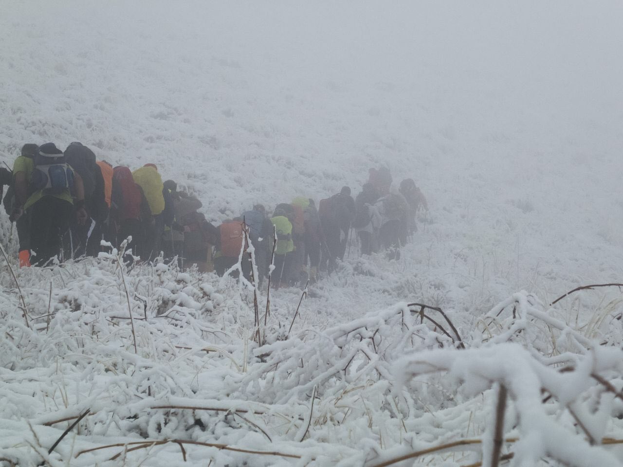 با ادامه مسیر و افزایش ارتفاع، حجم برف بیشتر خودنمایی می کرد و غلظت مه افزون تر تا جایی که وسعت دید به کمتر از 40 متر می رسید.