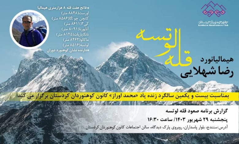 گزارش برنامه صعود به قله لوتسه توسط هیمالیانورد کورد همنورد رضا شهلایی