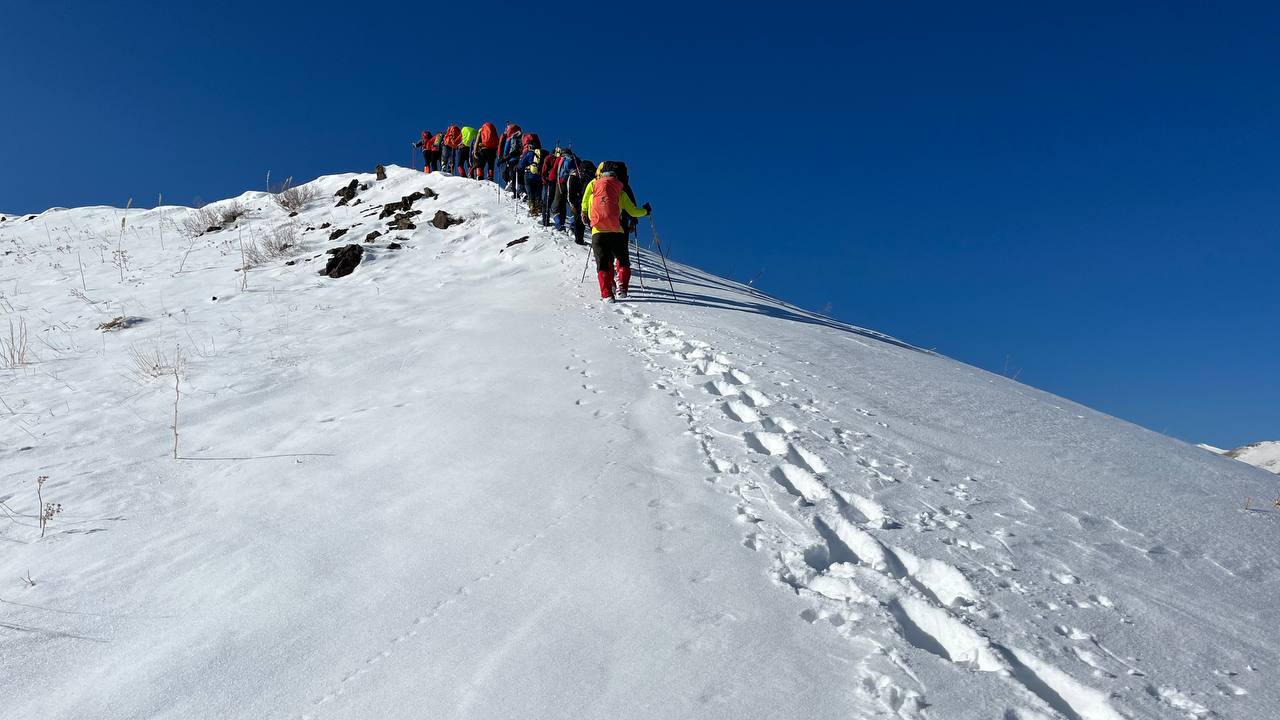 برنامه با حضور ۲۱ نفر از اعضا کانون کوهنوردان کردستان راس ساعت ۶ با حرکت مینی بوس از میدان اقبال به سمت روستای کرجو شروع شد. با رسیدن به روستای کرجو، ساعت ۷:۳۰ دقیقه پیمایش در دره عاشقان در جهت غرب و از انتهای روستا آغاز شد. بعد از پیمایش حدود یک کیلومتر با تغییر جهت به سمت جنوب و بالا رفتن ازیک شیب تند به خط الراس رسیدیم و پیمایش را درجهت غرب ادامه دادیم. ساعت ۸:۵۰ دقیقه یه مدت ۲۰ دقیقه جهت صرف صبحانه در یک مکان مناسب توقف کرده و سپس پیمایش روی یال و در مسیر زمستانی حدود ۶/۳ کیلومتر ادامه یافت. در طول طی این مسافت، نکات مهمی توسط مسئول فنی محترم برنامه مانند نحوه گام برداشتن در برفکوبی، حرکت صحیح درشیب های تند و ملایم و تشخیص مسیرهای ایمن در صعودهای زمستانه آموزش داده شد و از قله فرزه( ارتفاع ۲۶۳۵ متر) و قله هانه کمال(ارتفاع ۲۶۵۰متر) عبور کردیم. با حرکت بر روی یال اصلی، ساعت ۱۳:۴۵ دقیقه به قله یورد رسیدیم. به علت وزش باد شدید بعد از توقفی کوتاه در قله به منظور گرفتن عکس یادگاری، فرود از ضلع جنوبی قله آغاز و بعد از رسیدن به زین عاشقان در جهت شرق به سمت روستای کرجو ادامه یافت. جهت صرف نهار در ساعت ۱۴:۱۵ توقفی ۳۰ دقیقه ی داشتیم و سپس فرود را از گردنه ی بین قله های یورد و عاشقان و مسیر منتهی به باغ ها و مزارع روستای کرجوادامه دادیم. سرانجام پیمایش ساعت ۱۷:۳۰ دقیقه با رسیدن به روستا خاتمه و به سمت سنندج حرکت کردیم و راس ساعت ۱۸:۴۵ دقیقه با رسیدن به سنندج برنامه پایان یافت.