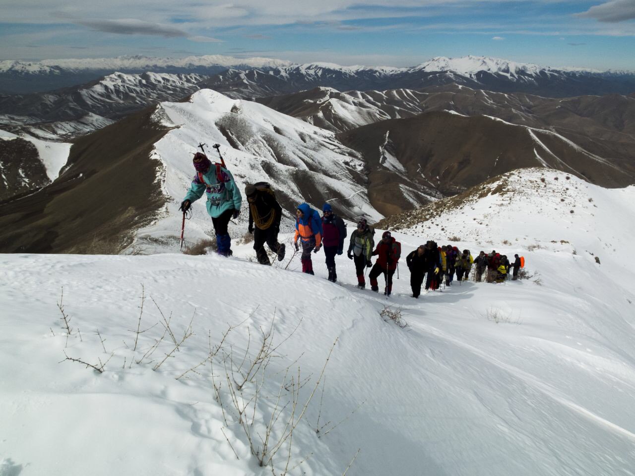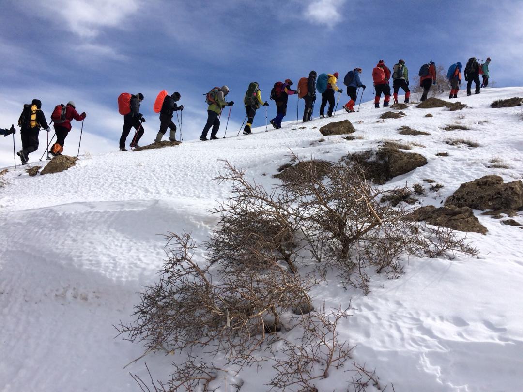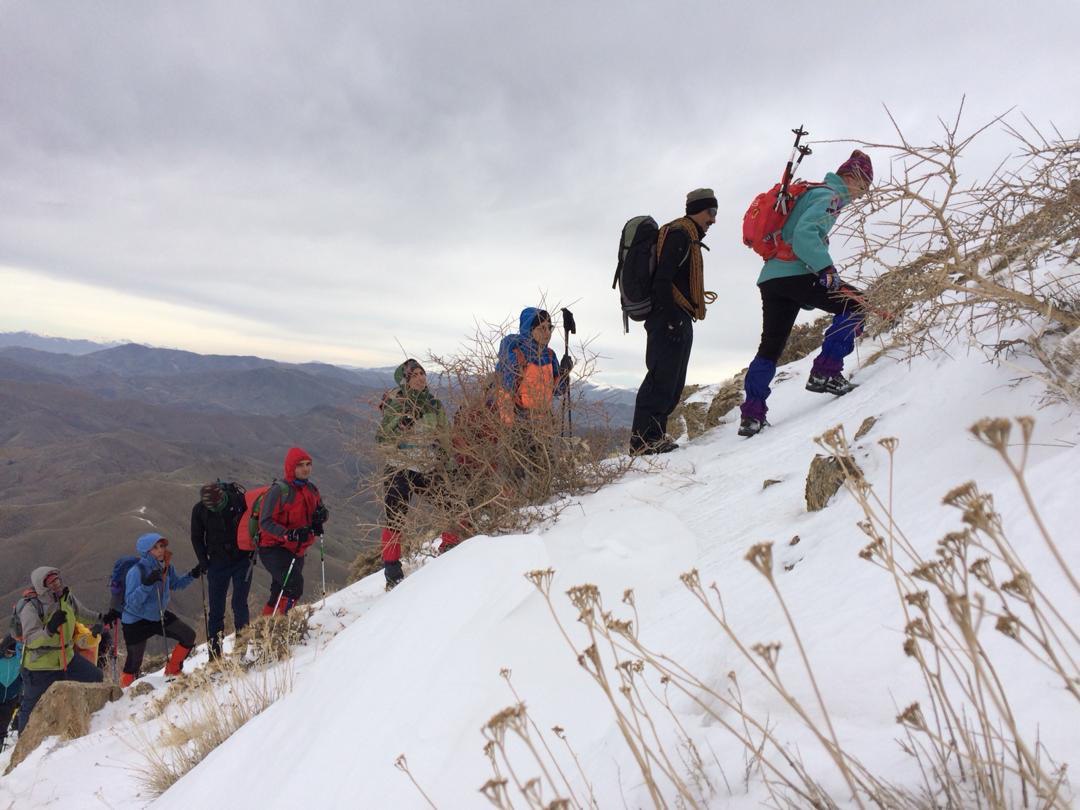 ساعت 5:30 بامداد با حضور ٣٠ نفر از اعضای کانون در میدان آزادی سنندج، تیم به سمت روستای کاظم آباد از توابع شهرستان کامیاران به حرکت درآمد و در محور جاده ای سنندج – کامیاران و با عبور از روستای مرواید و کاظم آباد، آماده ی حرکت به سمت قله شد. هوا کاملا روشن و ساعت از 7:30 بامداد گذشته بود. پس عبور از قسمت ابتدایی و رسیدن به یال اصلی که منتهی به قله می شد بنا به تصمیم سرپرستی، توقفی نیم ساعته برای صرف صبحانه انجام شد و در ساعت 8:20 تیم دوباره به سمت قله راهی شد. همزمان با افزایش ارتفاع، برفی حاصل از بارش روزهای قبل، در اثر سرمای شب گذشته، در بیشتر مسیر تبدیل به یخ شده بود که با سرقدمی آقای نگهدار، برف کوبی مناسب (همراه با استفاده از کلنگ کوهنوردی) نفرات تیم در ساعت 11:45 به قله رسیدند. حضور مربی و پیشکسوت گرامی و با اخلاق کوهنوردی استان “جناب آقای حسین نعمتیان” علاوه بر دلگرمی براي تیم، مایه ی افتخار و خوشحالی از همراهی ایشان در صعود به قله بود . با فرود از سمت یال جنوبی منتهی به روستای بلوجه، تیم در جوار یکی از چشمه آب های میانه ی مسیر برای صرف نهار توقف نمود. سپس با ادامه ی مسیر در ساعت 14 به روستای بلوجه رسید و با ابراز خرسندی از حضور آقای نعمتیان در این صعود و آرزوی سلامتی برای این مرد نیک عرصه ی ورزش کوهنوردی، به سمت سنندج حرکت نمود و برنامه خاتمه یافت.